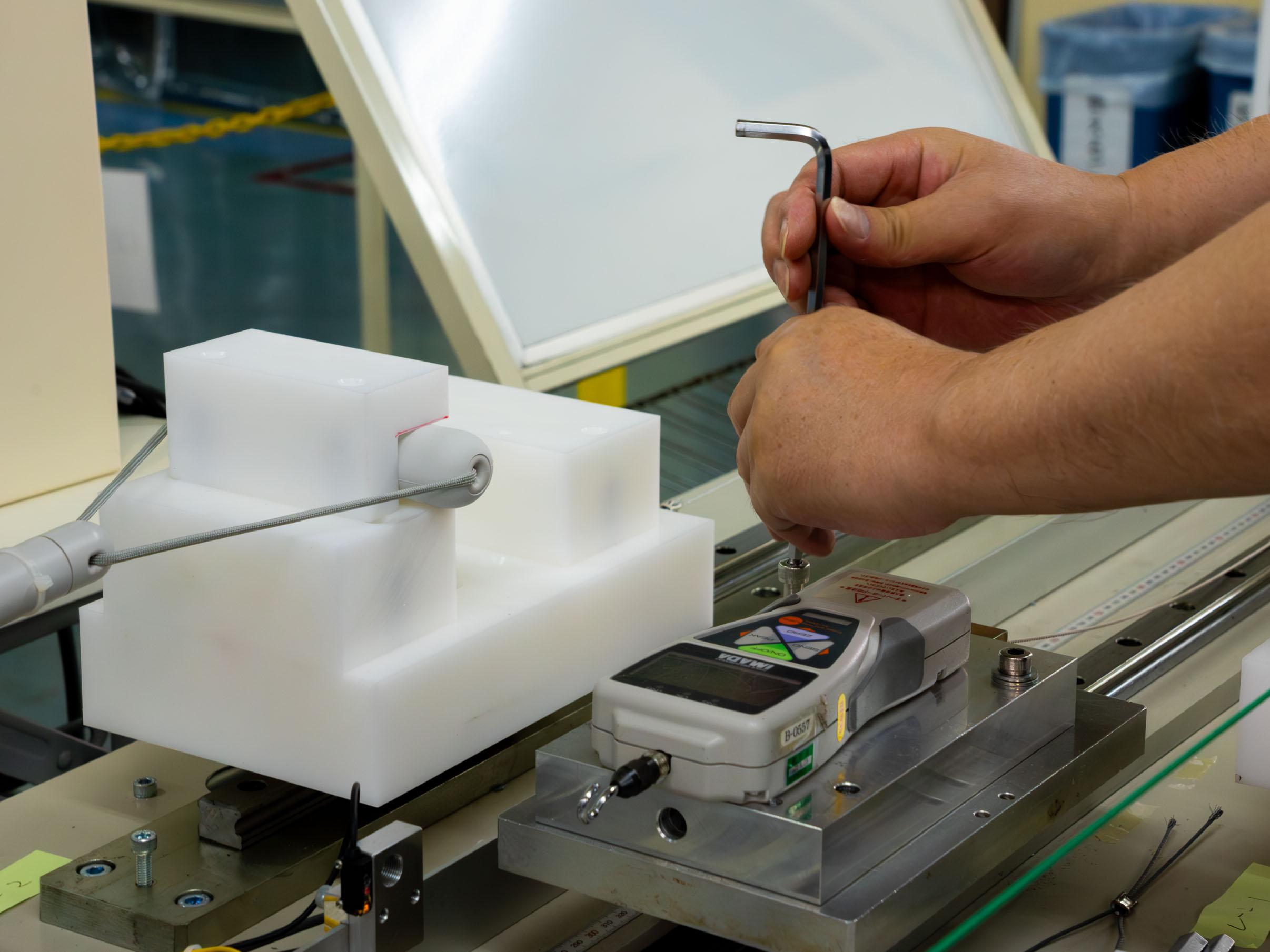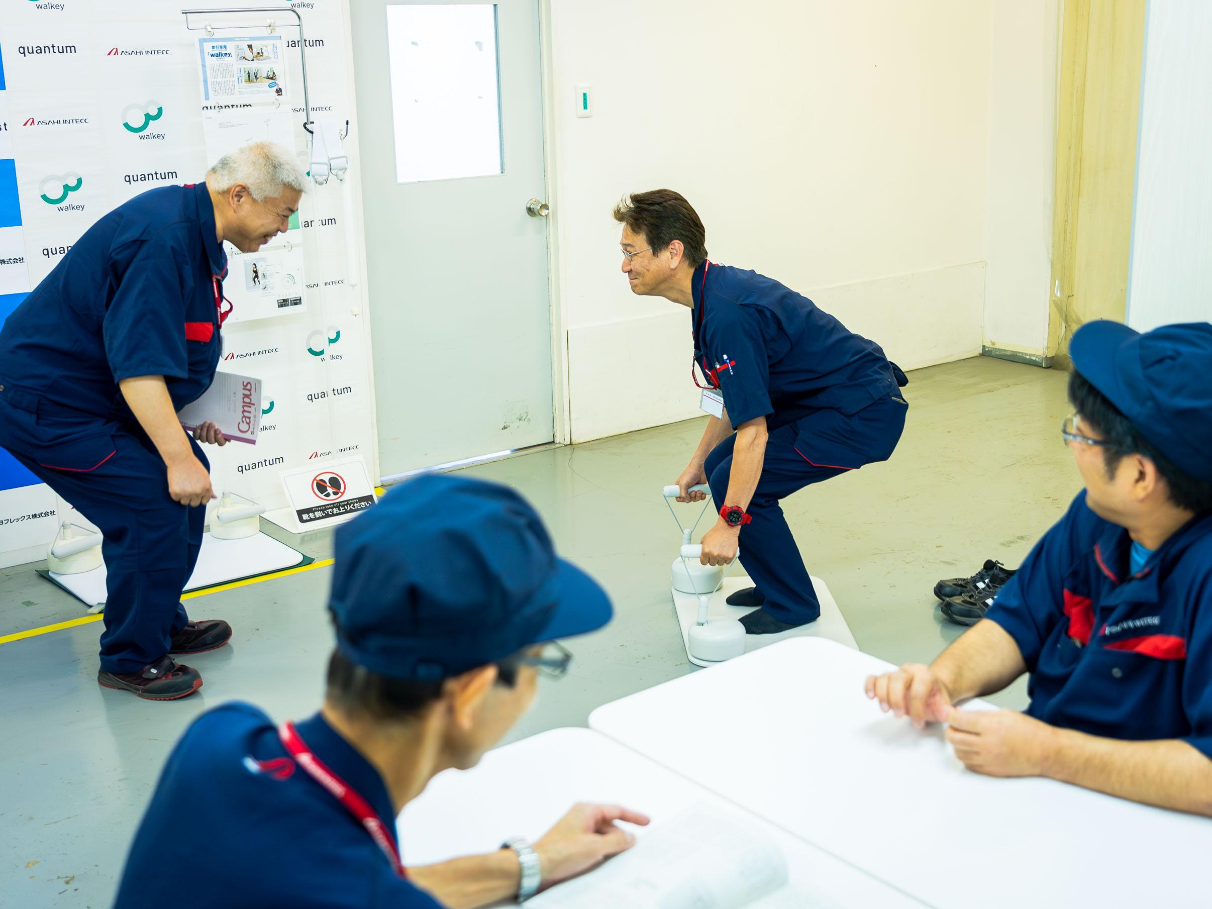 「walkeyデバイスは、ワイヤーロープを引いた時の荷重が一番重要です。その数値がきちんと出ているか、ひとつひとつ“全数チェック”します。左右でバランスが違ったりしては、トレーニング用のデバイスとして信用されませんから」(中川原さん)