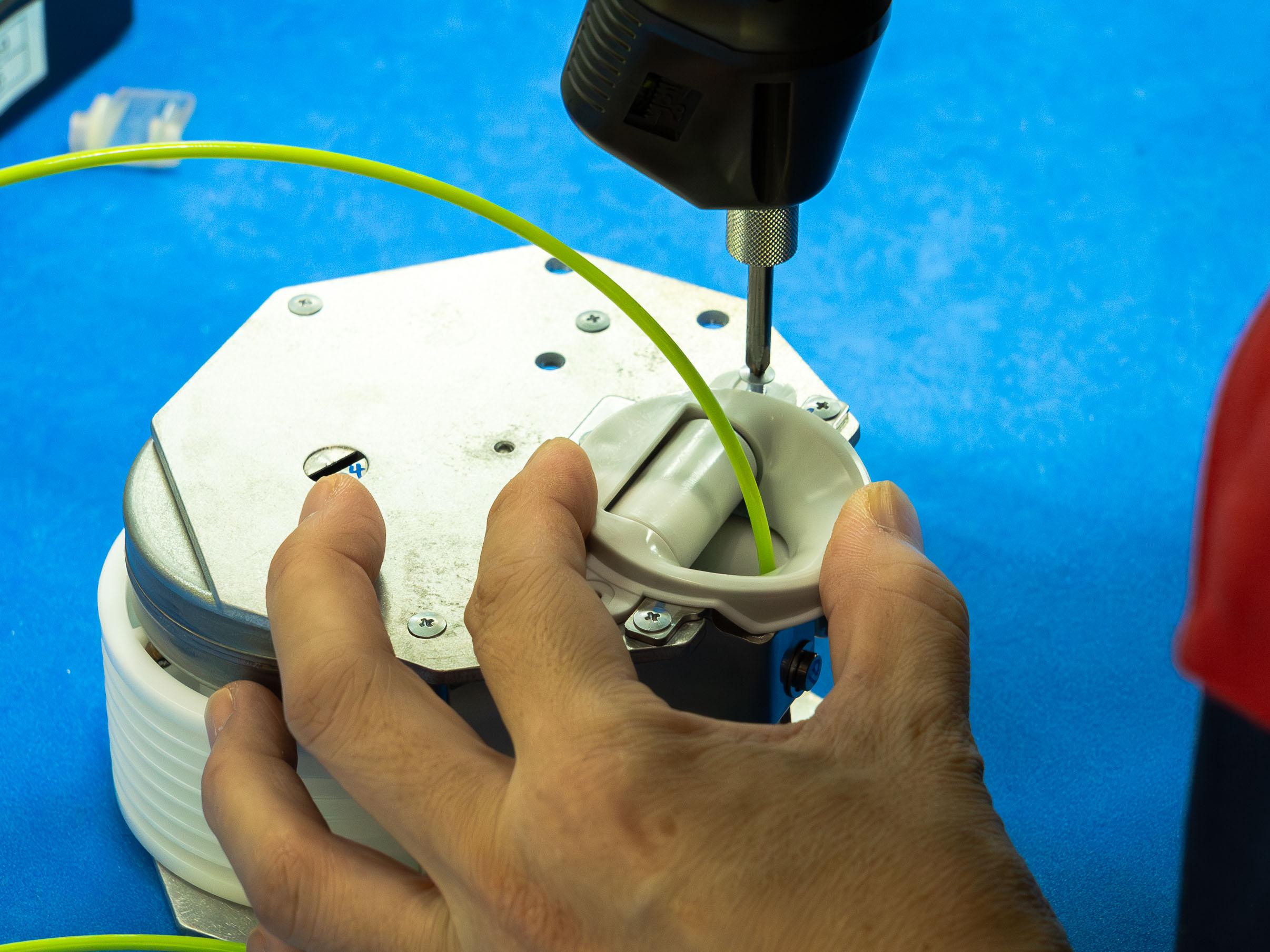 walkeyデバイスの製造にあたっての中川原さんたちの課題も、ワイヤーロープの強度にあったという。中川原さんは、朝日インテックのセブ工場(フィリピン)まで赴き、ワイヤーの選定に取り組んだという。