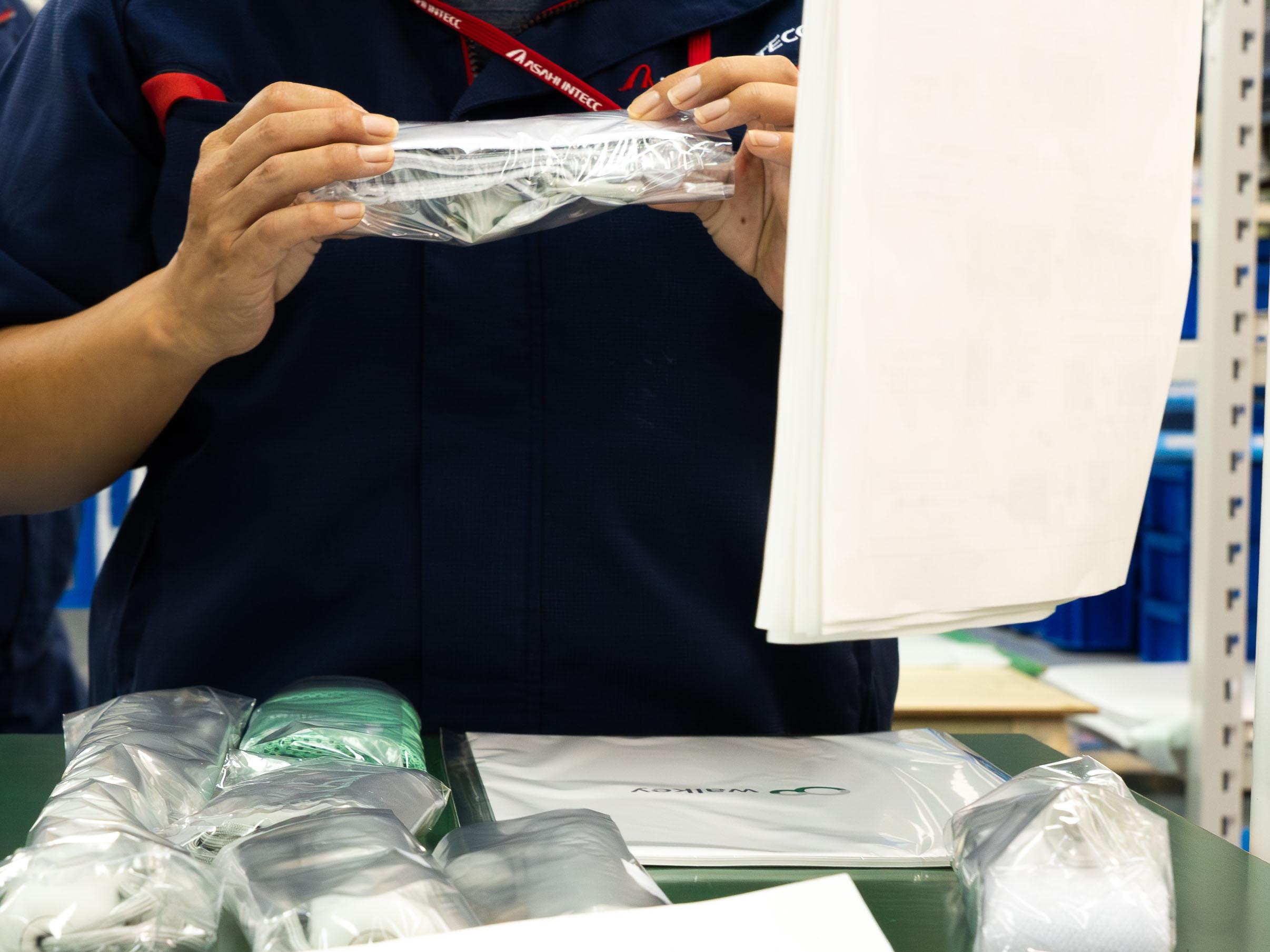 と、いうことでwalkeyデバイスの製造の話も、いよいよ最終工程。出荷前の検査で、中川原さんたちが一番に気を遣ったのは、walkeyの豊富なアクセサリー類の入れ漏れと、お客さまへ直接届けられて梱包を解いた際の美観だという。